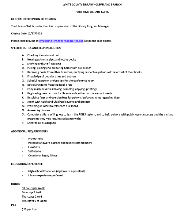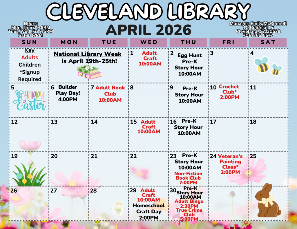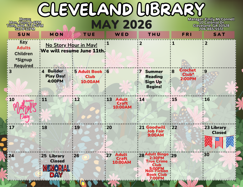 Every Thursday we have story hour from 10-11AM and there is a new book and craft in the Children’s area….