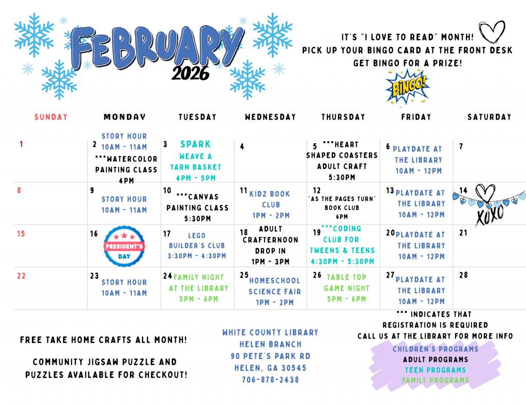 Helen Library Branch Card Catalog Renew Books Galileo Partnerships Contact Information Hours Fax: (706) 878-1479 Phone: (706) 878-2438 90 Pete’s Park RdP.O. Box 1088Helen, Georgia 30545 Monday9:00 am – 5:00 pmTuesday9:00 am – 6:00 pmWednesday9:00 am – 5:00 pmThursday9:00 am – 6:00 pmFriday9:00 am – 5:00 pmSaturdayClosedSundayClosed